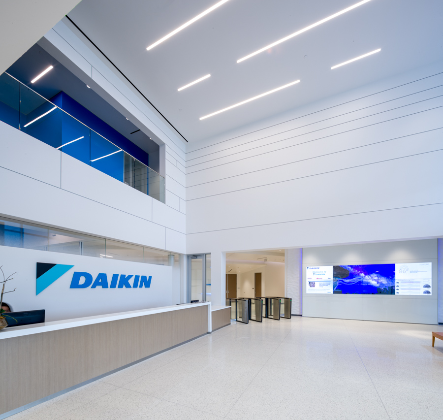 This 4,000,000 SF facility houses office, lab, manufacturing, and distribution spaces for a global heating, cooling, and refrigerant manufacturer. The owner requested that all business functions for the 497-acre campus be housed within the same building.