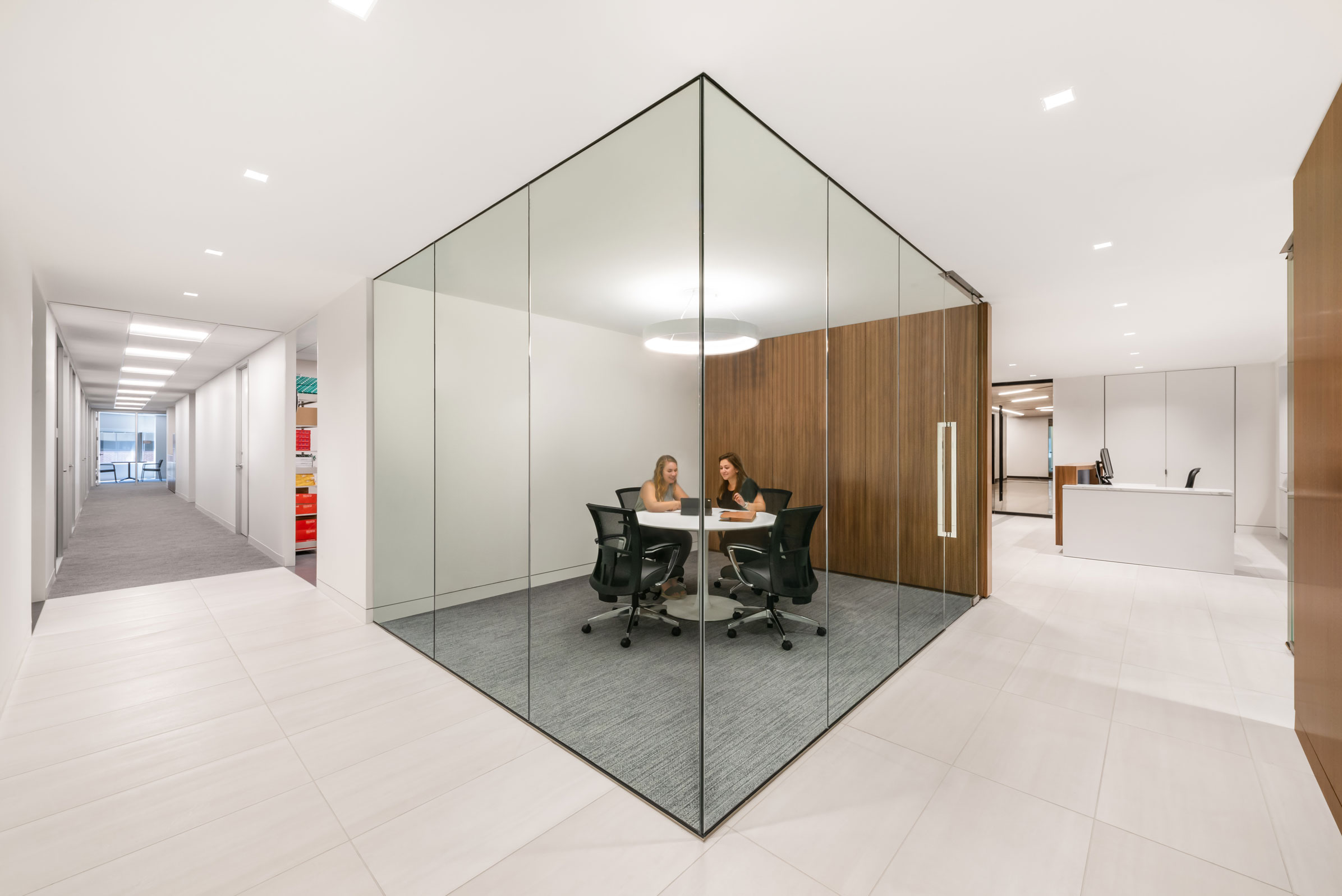 Developing an orderly space plan was key to providing the necessary filing and support space while creating a free flowing open space to enhance collaboration.